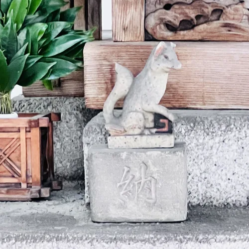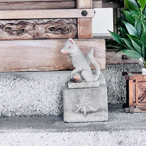 小さな置物ではありますが狛狐さんがいらっしゃいます。チョコンんとしたお姿がかわいいですが、なかなか鋭そうではあります。