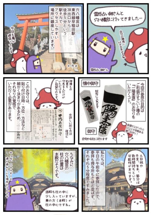 他の神社やお寺でも同じようなお守りがあるのですが、御利益の話は穴八幡宮が圧倒的に多いように感じます。