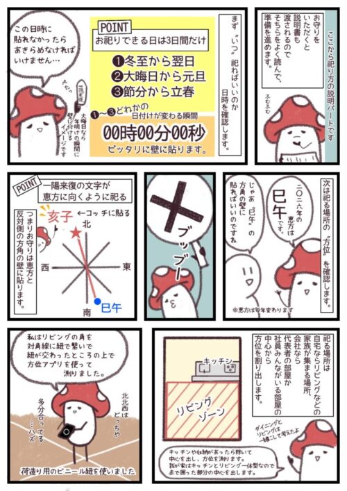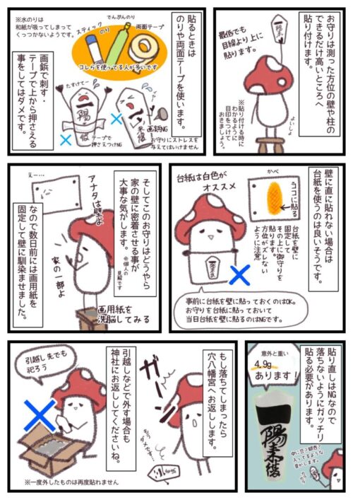 なので、その反対側になる「亥子」の壁にお守りを貼り着けます。 - ■壁(または柱)のできるだけ高い所