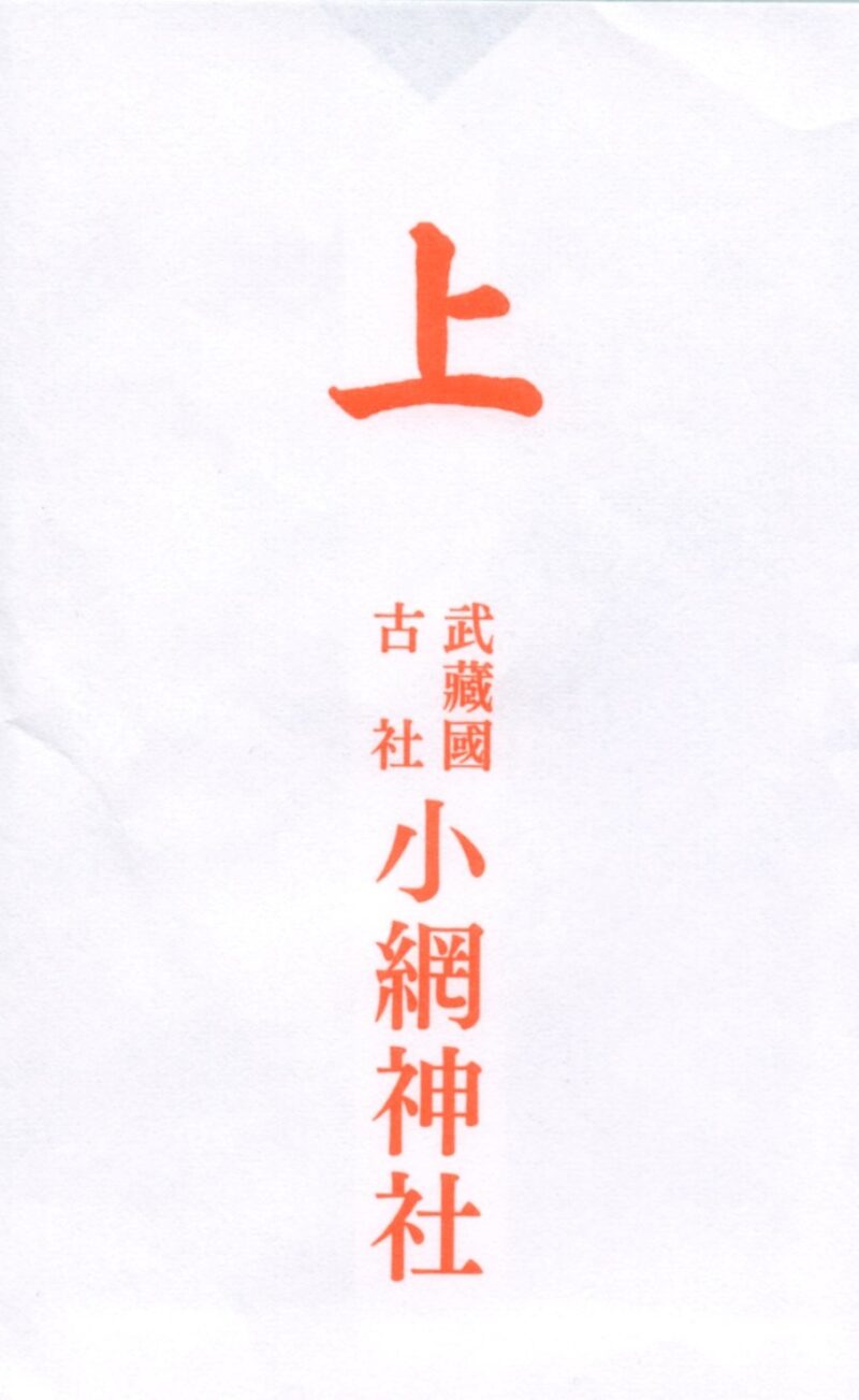 「武蔵國古社小網神社」の文字が入った授与品袋です。