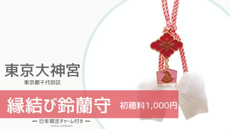東京大神宮(東京・千代田区)で授与されている「縁結び鈴蘭守(巳年)」を紹介します。 縁結びで大人気の縁結び鈴蘭守の巳年限定チャームがついたお守りです。実際にいた…
