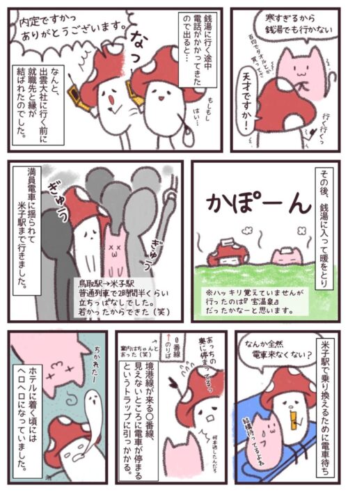 正直私も内定の電話が出雲大社に参拝後だったら変に依存的に神社にハマっていたかもなーと。
