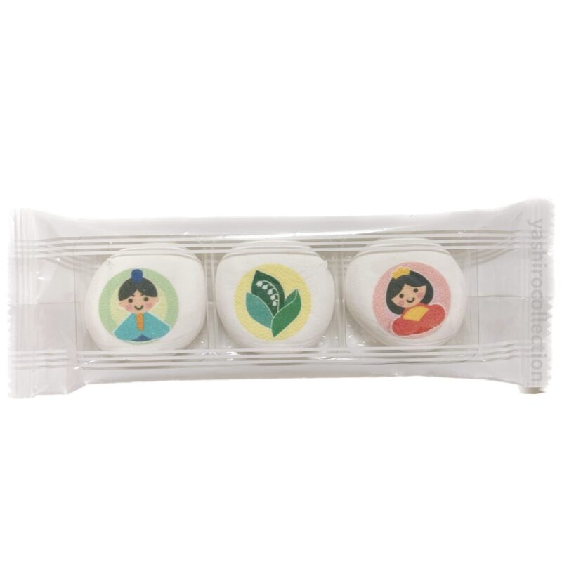 プリントチョコマシュマロはおそらくビーテック株式会社さんの商品でお雛様・お内裏様とスズランの絵がかわいい。味はよくあるヤツでした。