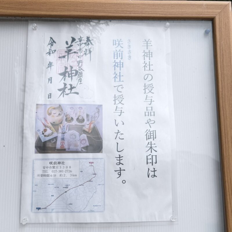 | 神社名 | 羊神社 ※実際の授与は 咲前神社(さきさきじんじゃ) にて行われています。(羊神社から車で10分ほど) |