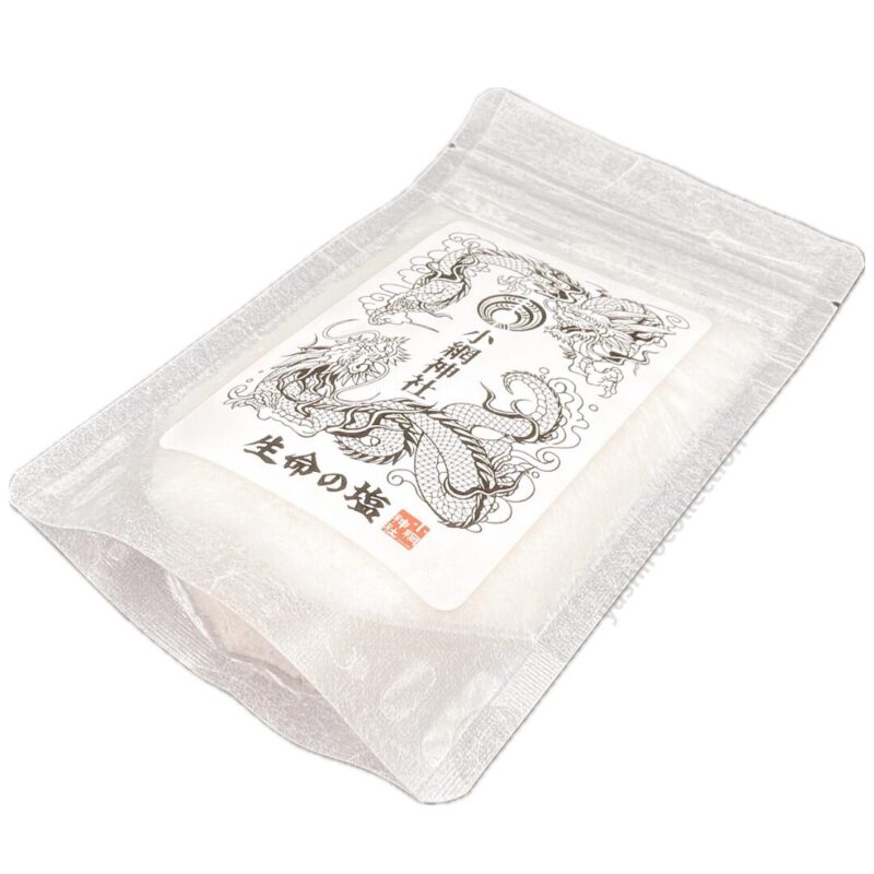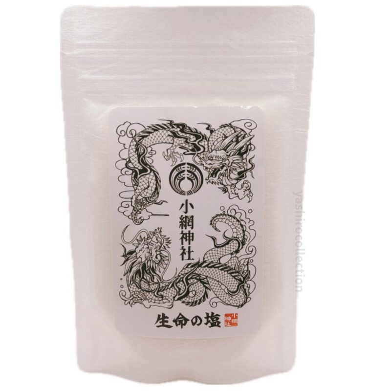 小網神社の二匹の龍がパッケージにも描かれています。お塩に商品のようなパッケージが付いているのは珍しいですね。