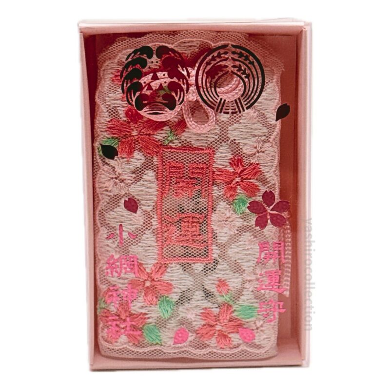 小網神社(東京都中央区)で授与されている「開運守」を紹介します。 レースと刺繍がとてもかわいく、実際にいただいたお守りを写真つきでまとめました。