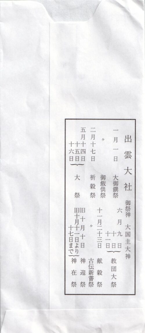 きのこ出雲大社東京分祠や埼玉分院などでも授与されています。