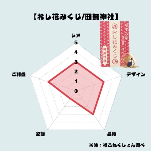 基本情報 おし花みくじ初穂料:300円田無神社東京都 西東京市2025/04/26頒布開始サイズ:パケ)4.0cm×0.2㎝×6.0㎝お守り)2.0cm×0.4㎝×1.8㎝授与日:2025/04/28 写真 解説…