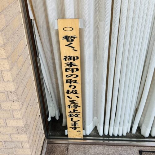 「暫く、御朱印の取り扱いを停止致します。」の案内がありました。