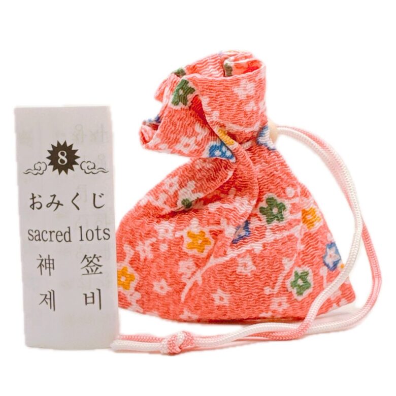 | サイズ: 巾着)7.4cm×0.2㎝×7.8㎝ おみくじ)2.4cm×5.8㎝×広23.2㎝ |