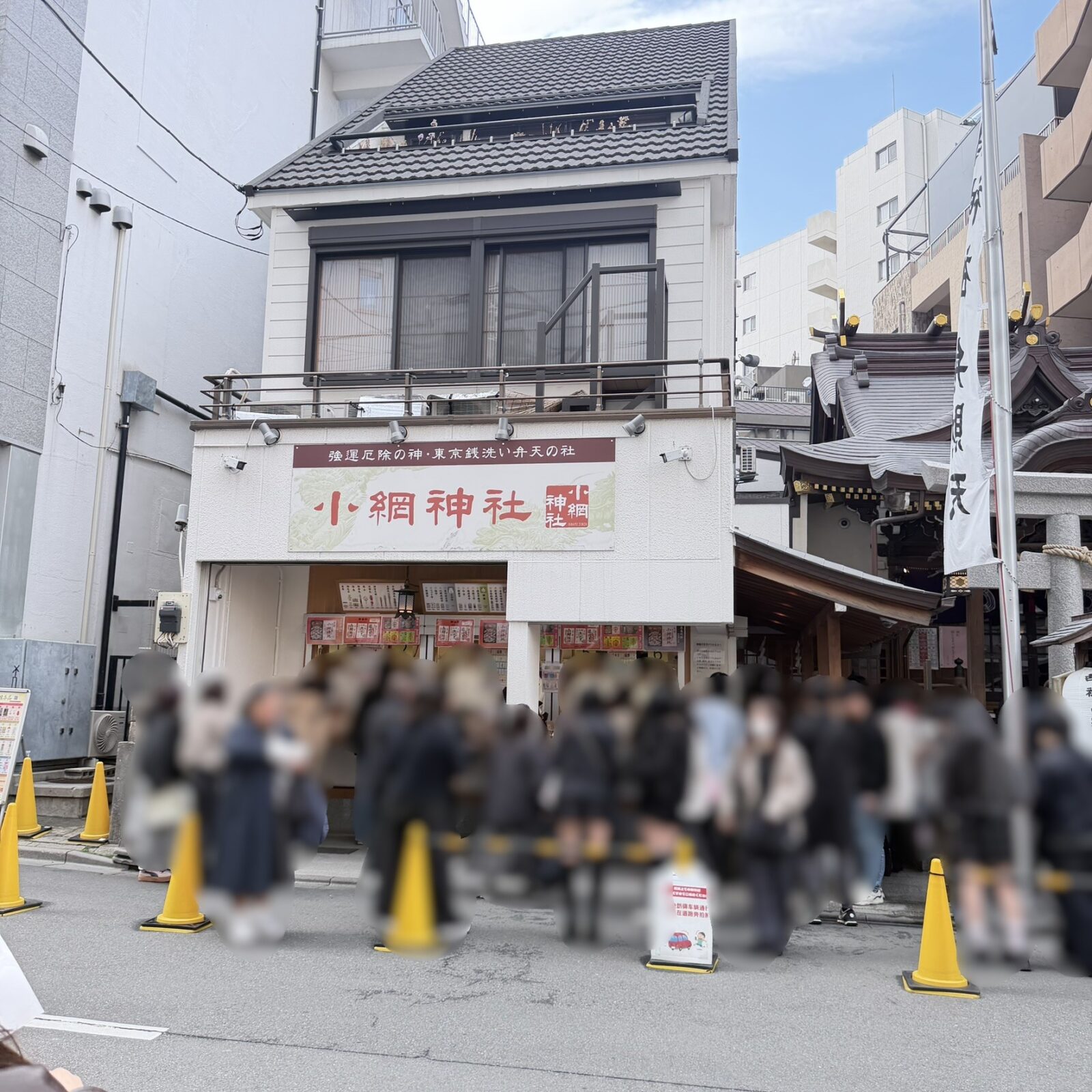 混雑で有名な小網神社ですが、3月・平日・開運日ではない日を選んで参拝したところ、参拝の列は鳥居のところくらいまでとそこまで並んでいませんでした。