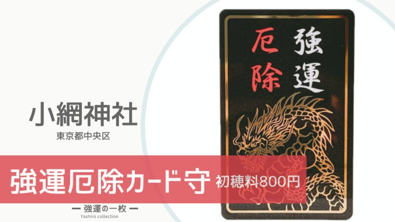 小網神社(東京都中央区)で授与されている「御鎮座560年記念強運厄除カード」を紹介します。みんな大好き強運厄除カード守りに限定色が頒布され、私は「水色」を選びました。実際にいただいたお守りを写真つきでまとめました。