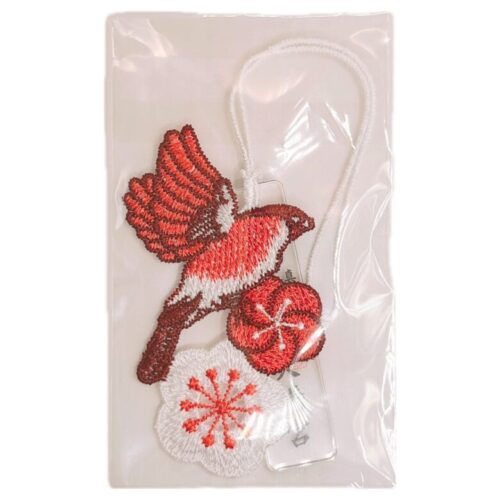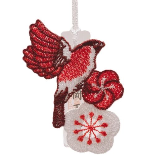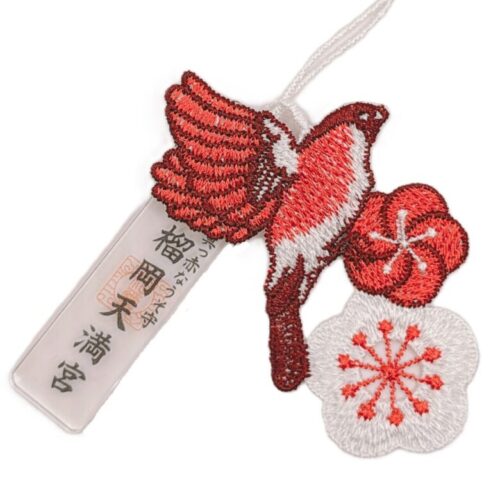 ■鷽と梅のレースのお守り。