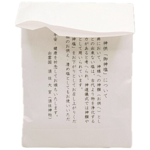 この「御神塩」をお下がりとしてお召し上がりください。(神棚のお供え・清め塩としてもお使いいただけます。)
