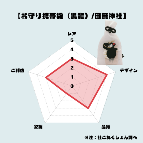 基本情報 お守り携帯袋(黒龍)初穂料:300円田無神社東京都 西東京市サイズ:袋)5.9cm×0.2㎝×11.0㎝お守り)2.8cm×0.3㎝×4.5㎝授与日:2025/04/28 写真 解説 「お守り携帯…