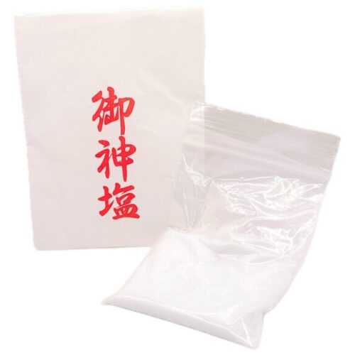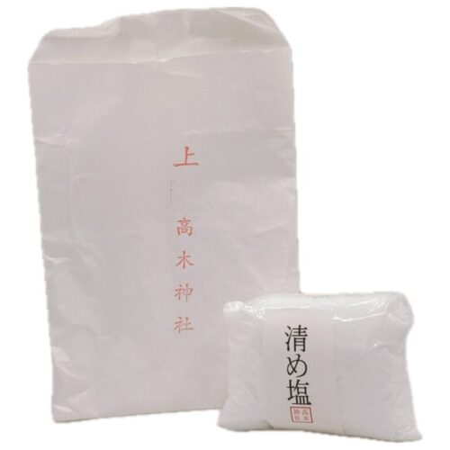 市販の粗塩でも良いですが(精製塩はNG)、神社で祈祷されたお塩を使うとさらに清めることができる(ハズ)
