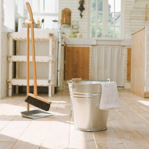 塩を撒いて履くなどの方法もありますが、私がやっているのは塩を入れた水で拭く方法です。