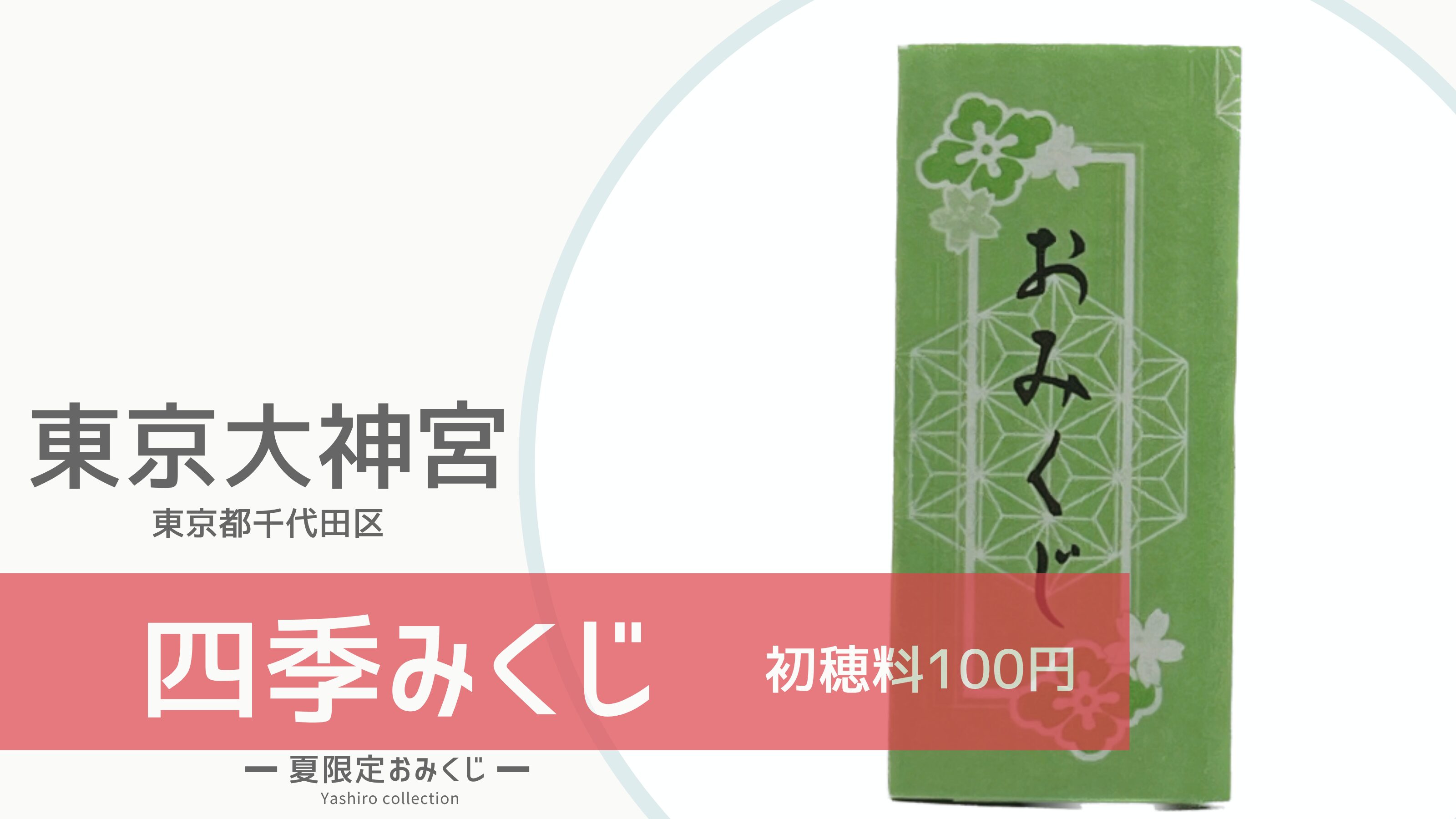 東京大神宮(東京・千代田区)で授与されている「四季みくじ(夏)」を紹介します。 季節で色がかわるシンプルなおみくじ、実際にいただいたお守りを写真つきでまとめました。