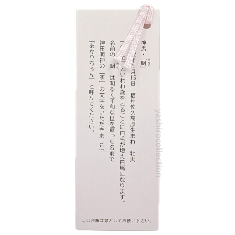 神田明神のアイドル神馬のあかりちゃん。大人しくてゆっくりとしているところに癒されます。お守りのイラストは少しあかりちゃんのイメージと違うなと思いますが、若いころのイメージで描かれたものなのかな?そう思うと成長と時の流れを感じますね。神馬がいる神社は少ないので、お守りをいただく際は是非あかりちゃんにも注目してみてくださいね。