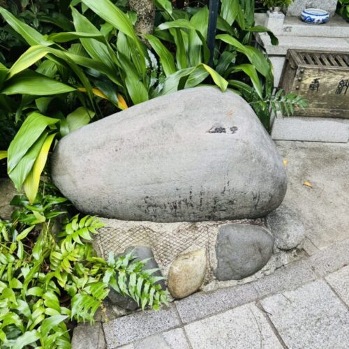 牛が寝ている姿のようです。頭を撫でてからお願い事をするようですが…どっちが頭なんだ?