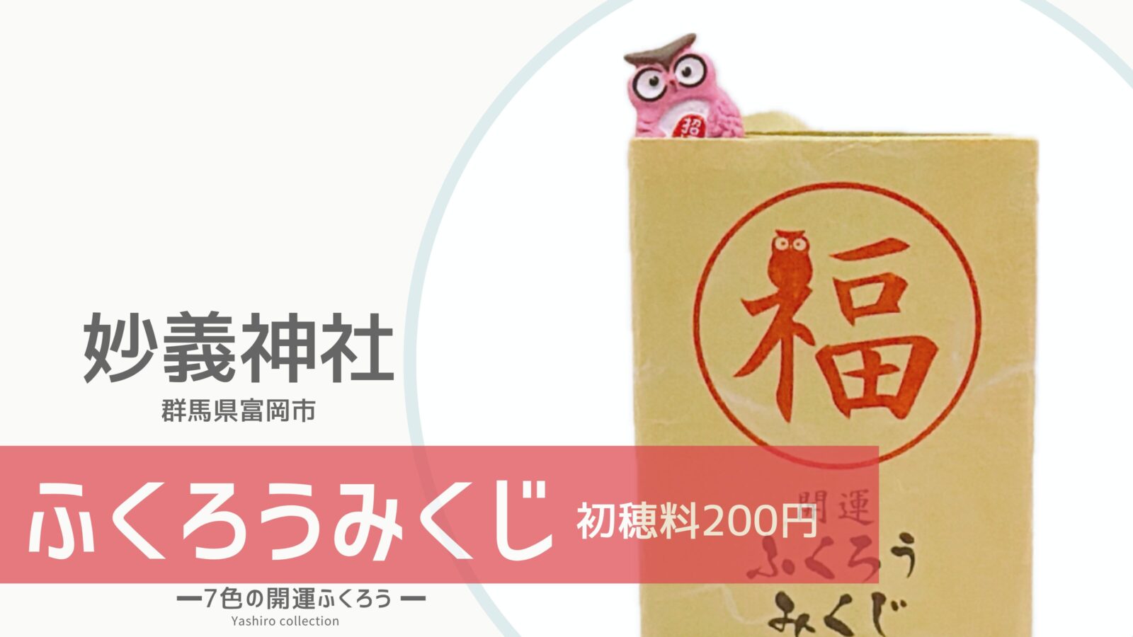 妙義神社(群馬県富岡市)で授与されている「ふくろうみくじ」を紹介します。 おみくじの中に、7色いずれかのふくろうのお守りが入っています。実際にいただいたおみくじを写真つきでまとめました。 ふくろうみくじの基本情報 おみくじ名開運ふくろうみく... -