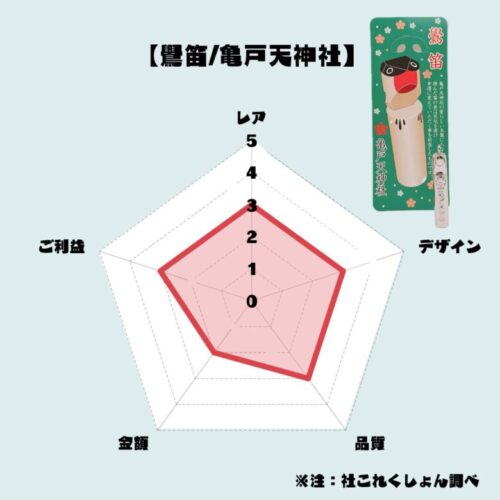 基本情報 鷽(五号)初穂料:3,000円亀戸天神社東京都 江東区サイズ:φ3.6㎝×10.9㎝鷽替神事の期間中のみ授与※2026年は1/24・25授与授与日:2026/01/24 写真 解説 勝手…