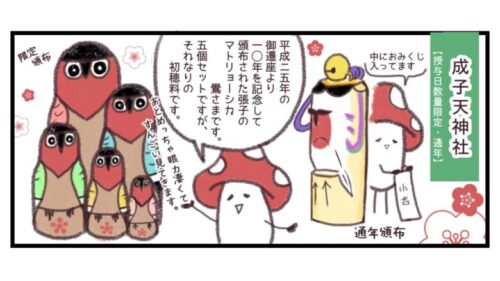 こんにちは!やしろ きのこです。牛天神北野神社はちょっと高級鷽様で、いつかいただいてみたいと思っていたのですが、昨今の物価高騰により、初穂料も値上がりを見せて…