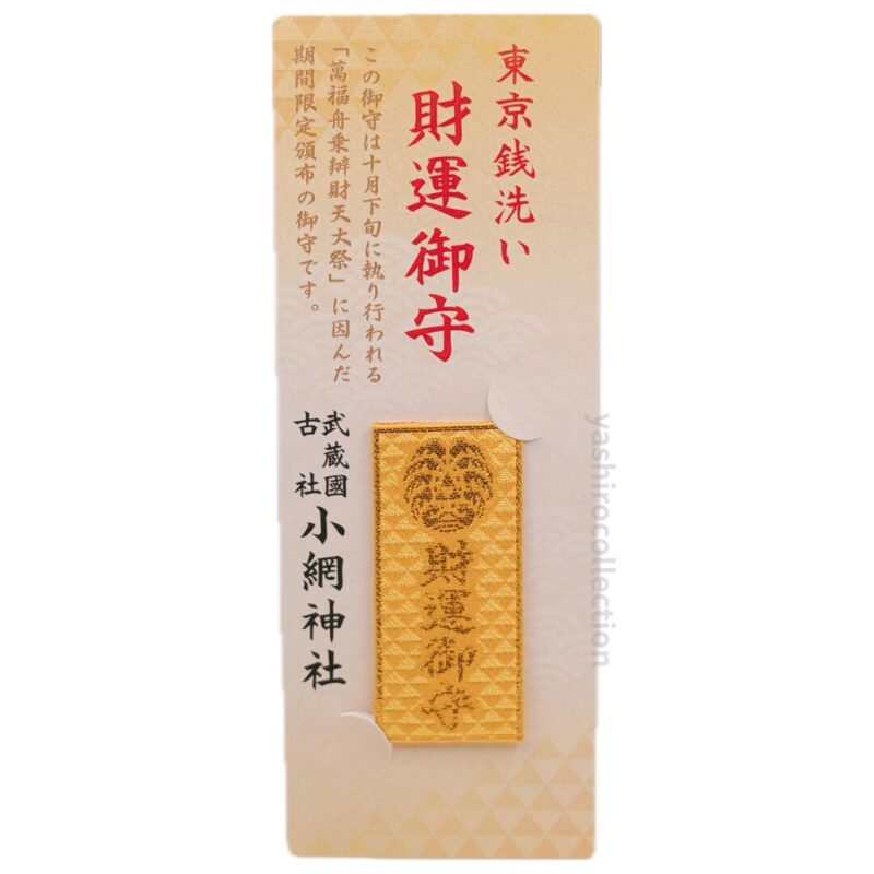 財運守初穂料:1,000円小網神社東京都 中央区令和6年弁天祭限定2024/10/19~頒布・数量限定サイズ:お守り)4.6cm×0.1㎝×7.6㎝ケース)5.3cm×8.4㎝台紙)5.7cm×14.0㎝授与…